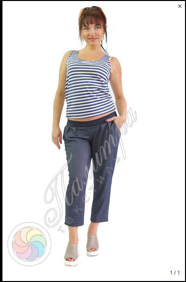 Стильные укороченные брюки с защипами на поясе, джинсовая расцветка, модный молодежный силует - идеальный модель для современных, энергичных женщин.