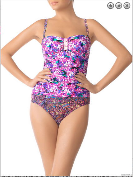 Новинка сезона! Оригинальный слитный купальник нового типа. Бюст - бандо со съемными регулируемыми бретелями и дополнительной поддержкой в виде тонкой силиконовой ленты по краю бюста. Внутренняя конструкция модели дополнена вставками из утягивающей сетки Power net для улучшенной посадки и устранения маленьких несовершенств фигуры. Эффектность модели придают брошь, украшающая бюст, и яркая подкладка цвета фуксии.