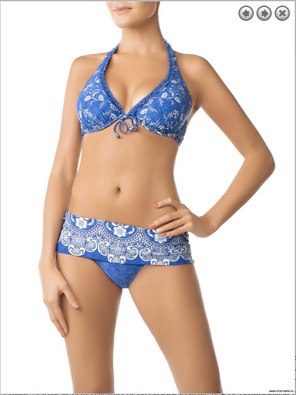 Аккуратный раздельный купальник. Бюст -- мягкие вместительные чашки на каркасной поддержке со съёмными вставками-корректорами, элегантными галстучными завязками на шею и фирменной застёжкой на спине. Объём под грудью легко корректируется регулировкой по центру. Плавки классической посадки с широким отворотом, который позволяет регулировать высоту пояса.