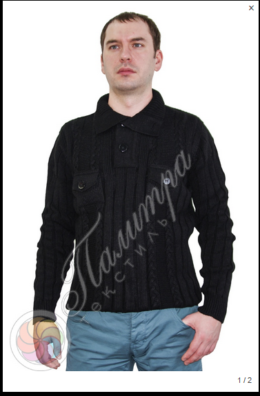 Свитер вязанный мужской дополненный воротником-стойка с застежкой на пуговицах. Стильный дизайн и классический чёрный цвет делает модель популярной и выводит в лидеры продаж.