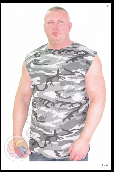 Майка камуфлированная больших размеров 4-х цветная, двухстороннее активное крашение. В производстве используется трикотаж, кулирное полотно, плотностью 150 г/м2, состав 100% хлопок.