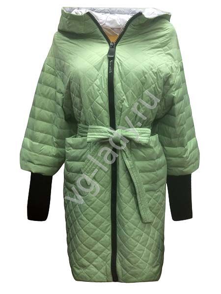 Пальто с капюшоном, с поясом, трикотажный манжет отстегивается. Длина - 88 см.