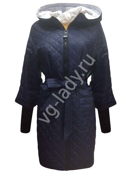 Пальто с капюшоном, с поясом, трикотажный манжет отстегивается. Длина - 88 см.
