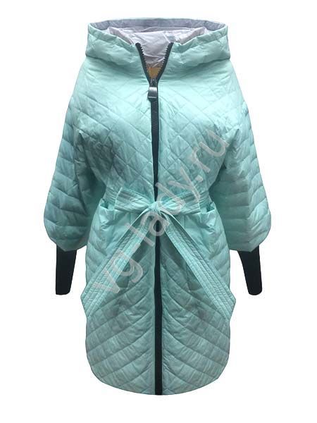 Пальто с капюшоном, с поясом, трикотажный манжет отстегивается. Длина - 88 см.