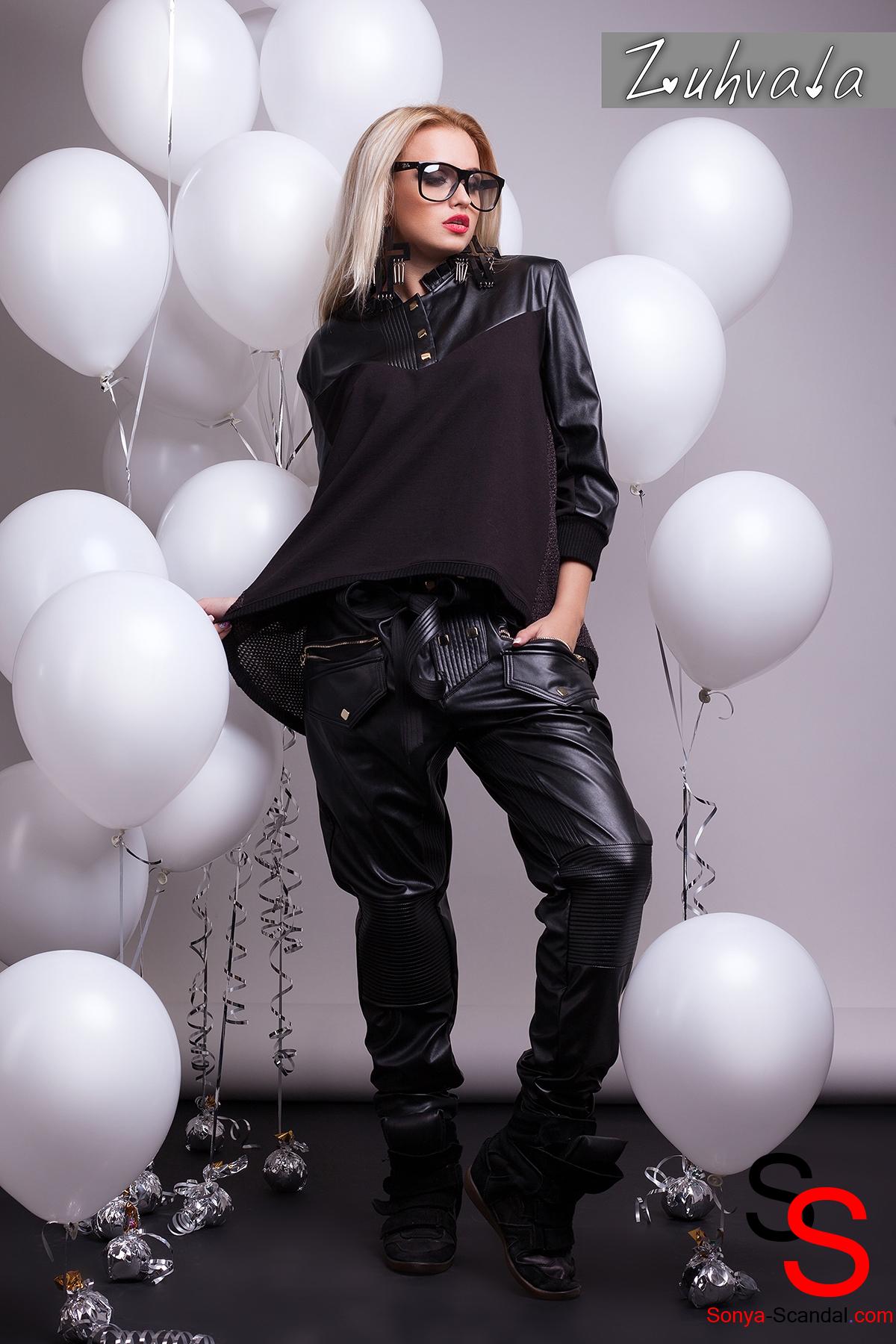 Описание: кож.зам, ажурный трикотаж, длинна верхушки перед 51см, зад 71см, брюк 102см.