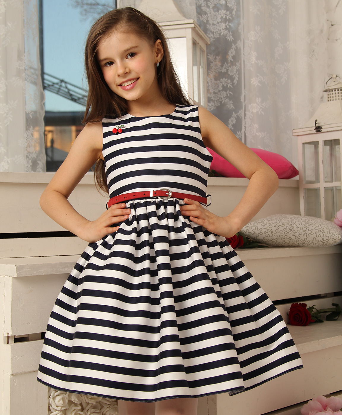 Красивое, пышное платье в полоску , выполнено из турецкого жаккарда. Платье украшает кожанный ремешок. Покладка 100% Хлопок