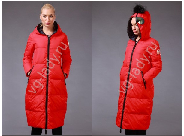 Полупальто пуховик, на капюшоне очки. Длина 108, рукав 60