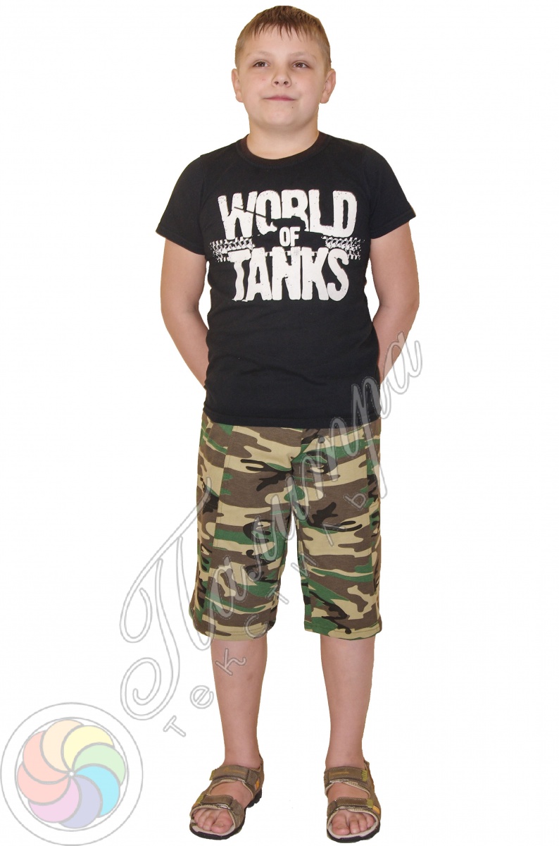 Отличные шорты из камуфлированного трикотажа с накладными карманами. Для производства изделия используется кулирное трикотажное полотно плотностью 150 г/м2, составом 100% хлопок.