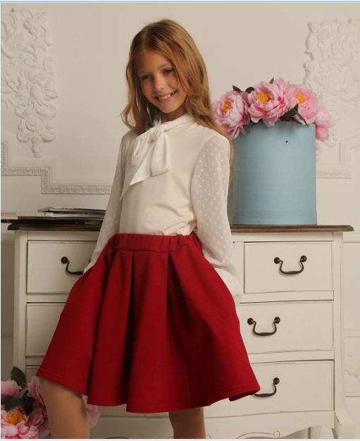 Юбка в бантовую складку , сбоку два кармана , пояс на резинке.