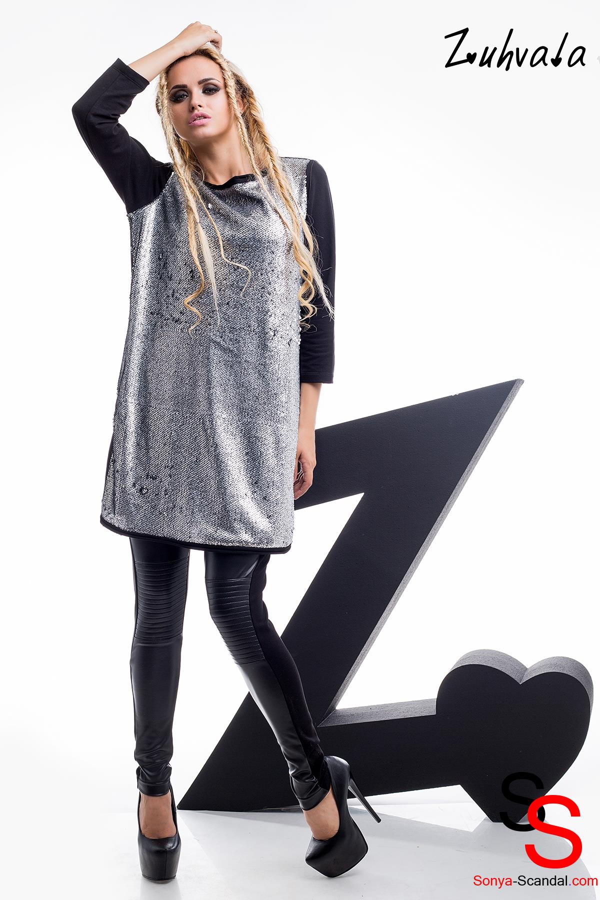 Описание: платье-туника, ткань: трикотаж двунитка, паетки
