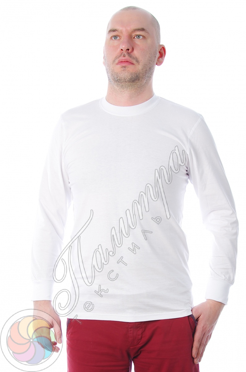 Футболка мужская однотонная с длинным рукавом, классический (прямой) покрой, горловина изделия обработана рибаной. В изготовлении футболок, используется трикотажное кулирное полотно, состоящее из 100% хлопка, плотностью 150-160 г/м2.
