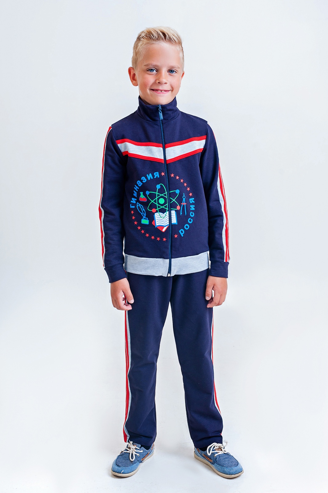 Описание: В гардеробе у каждого ребенка должен быть костюм.Кармашки в боковых швах курточки.В вставки контрасного цвета настрочены лампасы,что придает изделию "спортивности".Рекомендован для школы.