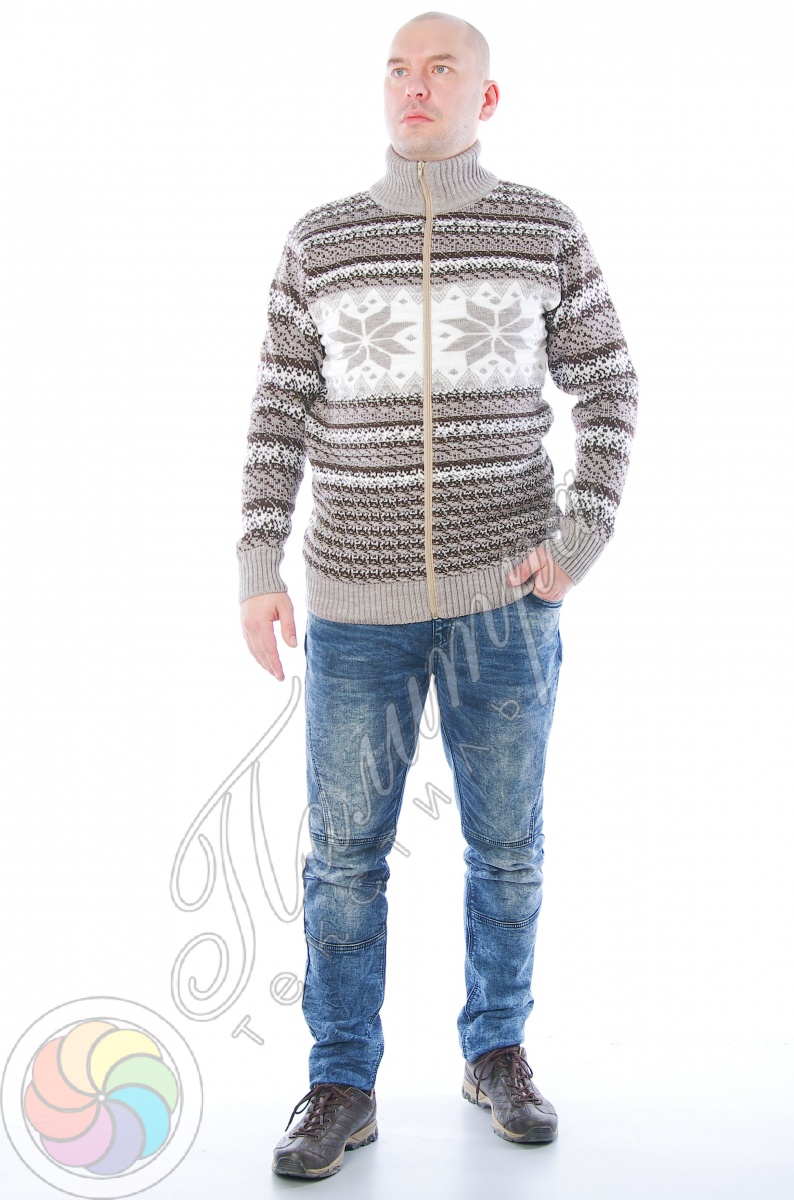 Мужская шерстяная классическая кофта на молнии с зимним рисунком,