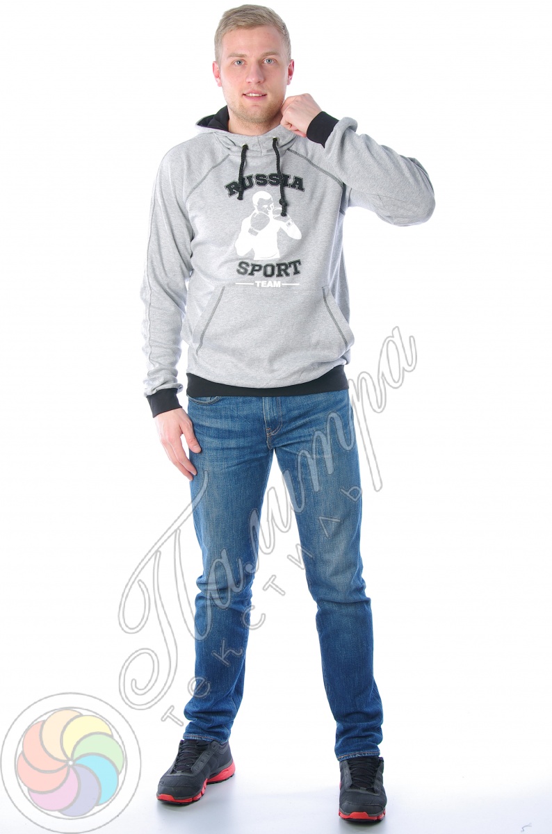 Отличная мужская толстовка с капюшоном и накладным карманом-"кенгуру". Универсальный дизайн является важной составляющей этой модели. Изделие выполнено из трикотажного полотна - интерлок, манжеты и пояс изготовлены из эластичного материала, кашкорсе с лайкрой, легко повторяющего форму тела, что делает ношение одежды особенно приятной. На спине и груди толстовка украшена большим принтом в боксёрской тематике, именно поэтому любой поклонник этого вида единоборств будет от неё в восторге.
