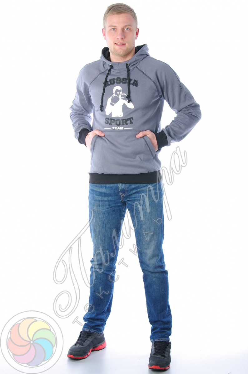 Отличная мужская толстовка с капюшоном и накладным карманом-"кенгуру". Универсальный дизайн является важной составляющей этой модели. Изделие выполнено из трикотажного полотна - интерлок, манжеты и пояс изготовлены из эластичного материала, кашкорсе с лайкрой, легко повторяющего форму тела, что делает ношение одежды особенно приятной. На спине и груди толстовка украшена большим принтом в боксёрской тематике, именно поэтому любой поклонник этого вида единоборств будет от неё в восторге.