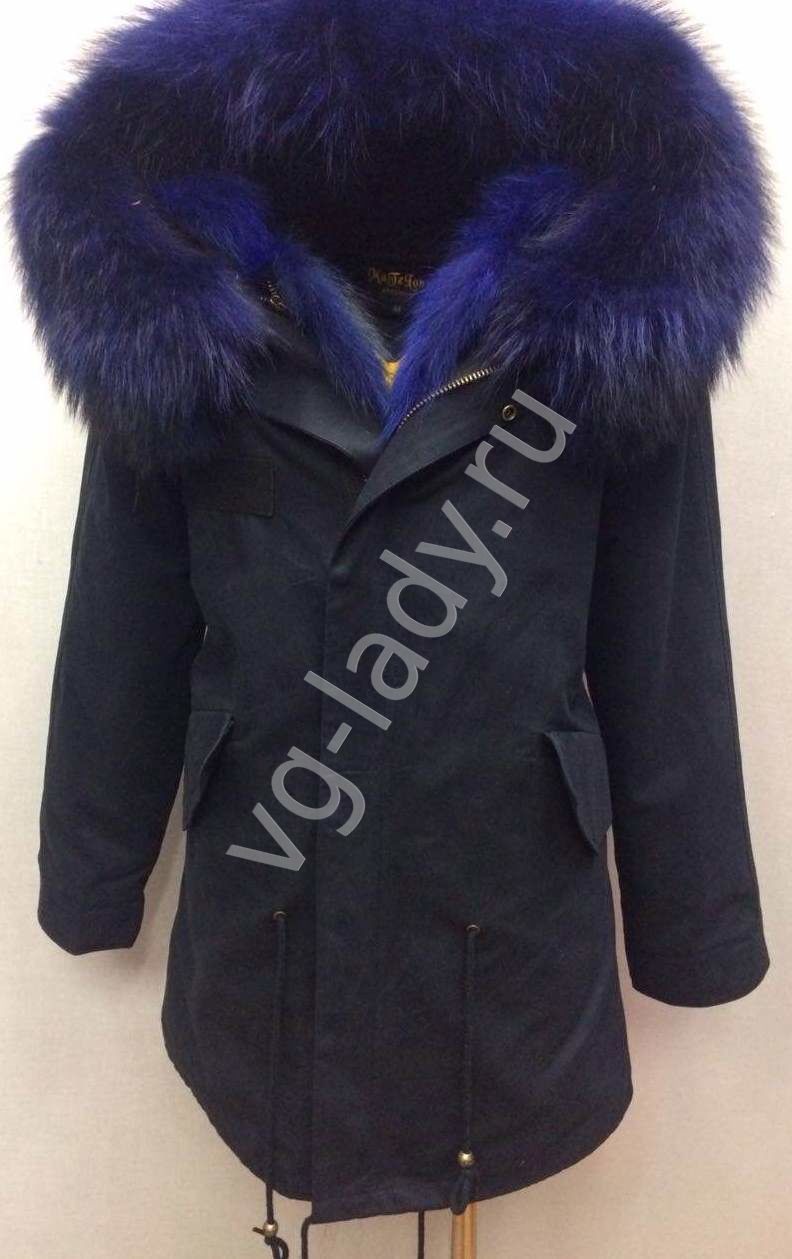 Куртка-парка, наполнитель верблюжья шерсть, подкладка отстегивается, с капюшоном, мех натуральный крашенный енот, ткань плотная х/б, длина - 81 см, рукав - 63см.
