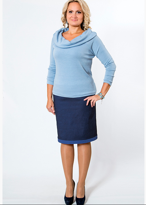 5% эластанОписание модели: Юбка карандаш из эластичной костюмной ткани с благородным отливом. Отделочные листочки на переде и кайма низа из ткани компаньона. Верх на обтачке, подкладка сетка стрейч. Длина по боковому шву ок 58 см. На фото с блузкой 767-2024.