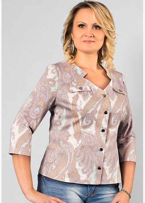 5% эластанОписание модели: Жакет из эластичной хлопковой джинсы. Прилегающий силуэт. Рукав 3/4. Застежка на металлические пуговицы. Отделочные клапаны в шве кокетки переда. Длина по спинке от плечевого шва ок 60 см. На фото с юбкой 023-5612.