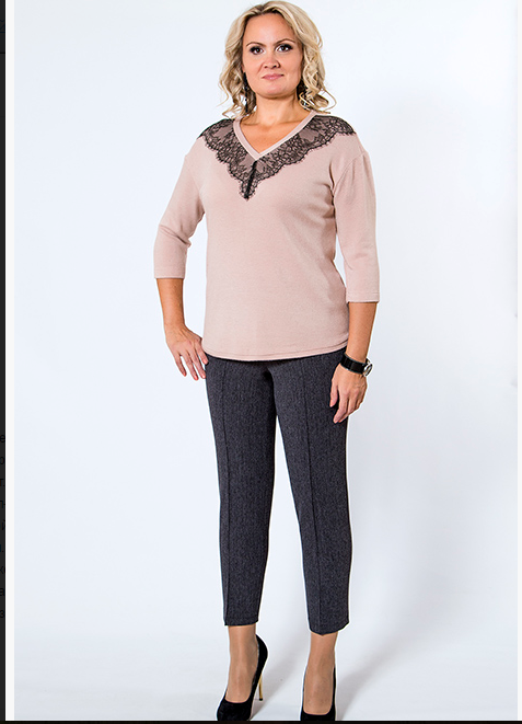 5% эластанОписание модели: Брюки длиной 7/8 из костюмной ткани стрейч. Мелкое букле, цвет графит. Прилегающий силуэт. Застроченный защип-стрелка на переде. Притачной пояс со шлевками для ремня. Длина от верха пояса по боковому шву ок 95 см. Ширина низа ок 17 см. На фото с блузкой 769-2029..