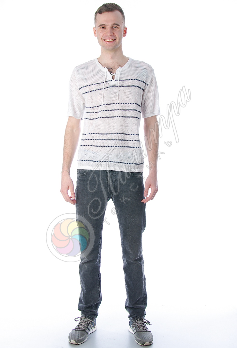 Легкая, приятная к телу футболка-сетка из хлопка - незаменимая вещь для теплого времени года.