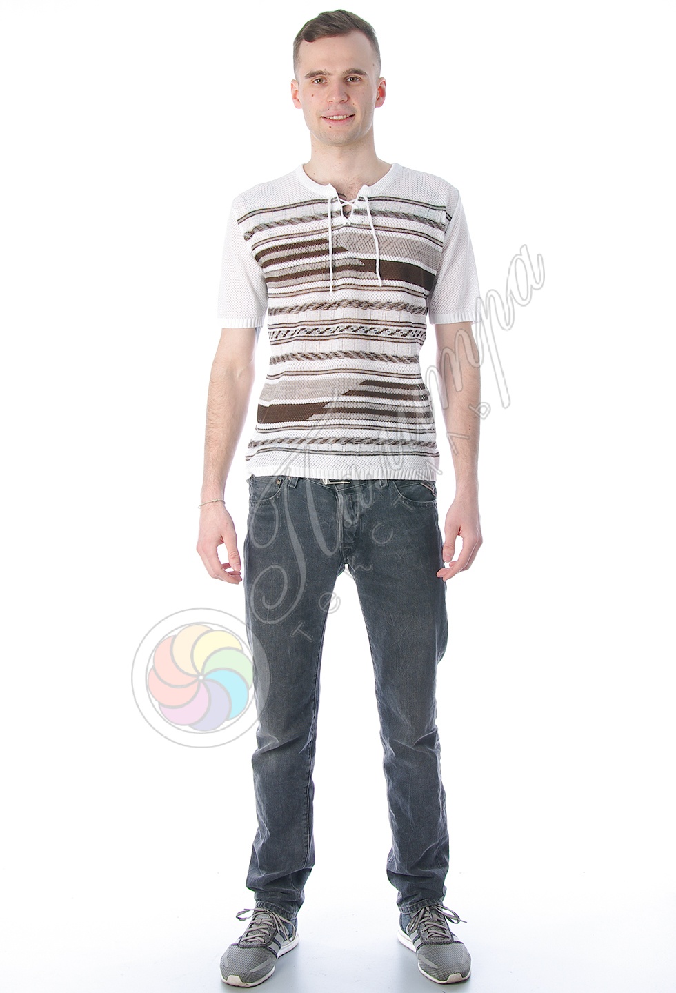 Легкая, приятная к телу футболка-сетка из хлопка - незаменимая вещь для теплого времени года.