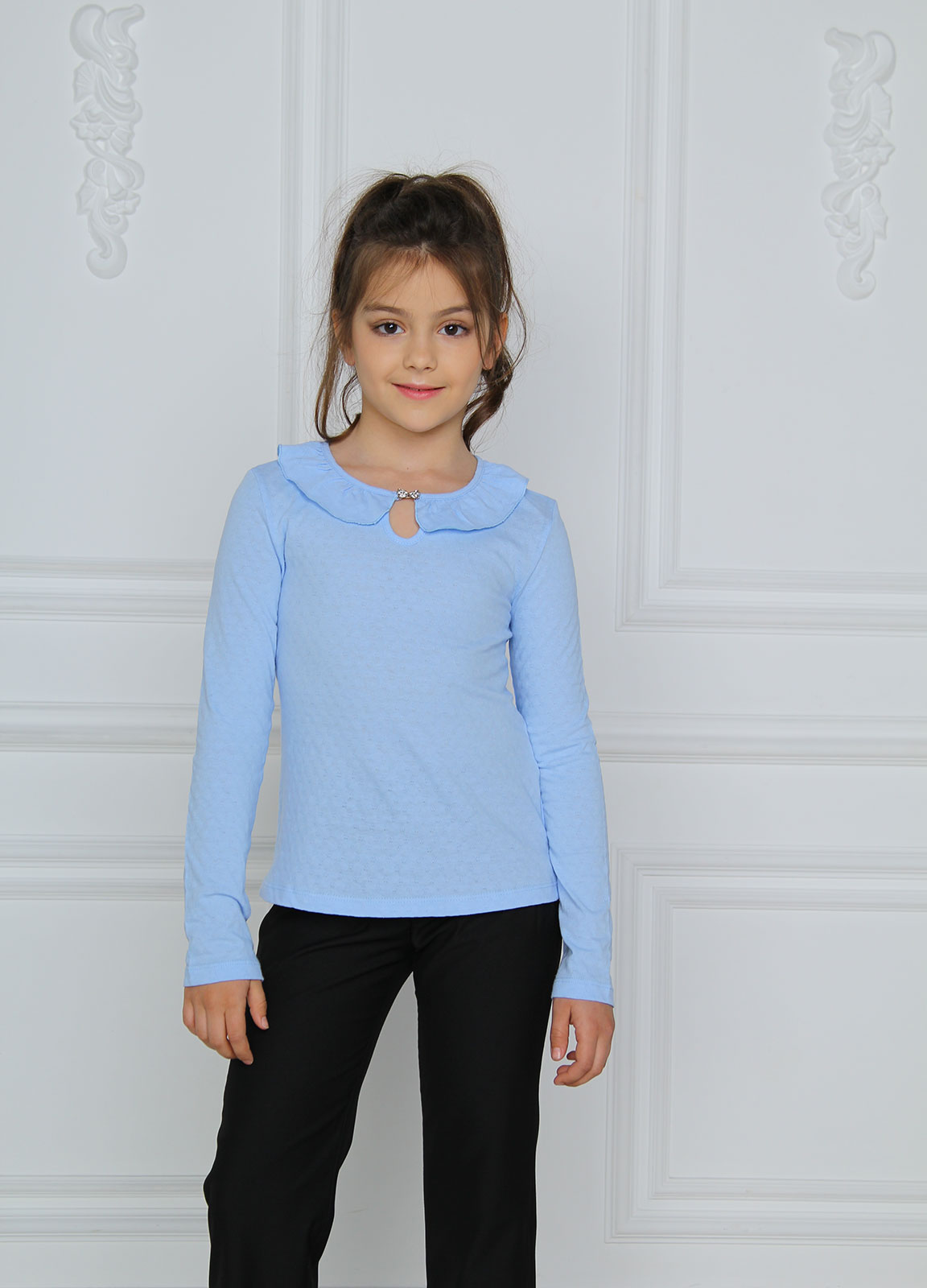 Трикотажная блузка с длинным рукавом. Застежка спереди. (Застежка -металлофурнитура может отличаться от фото) . Возможно наличие страз.