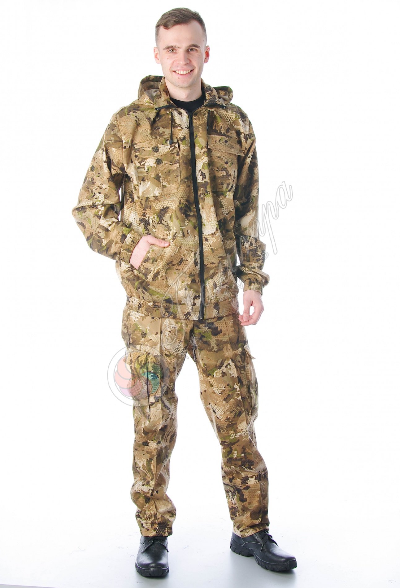 Куртка на молнии с капюшоном, два боковых кармана и два нагрудных с клапанами.