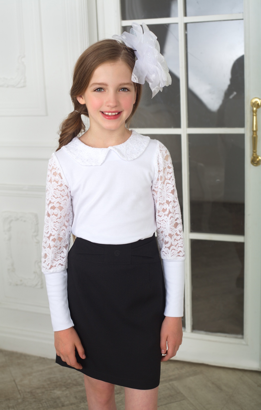 Состав: интерлок (хлопок 97% + эластан 3%), гипюр (ПЭ 77% + вискоза 18% + эластан 5%)