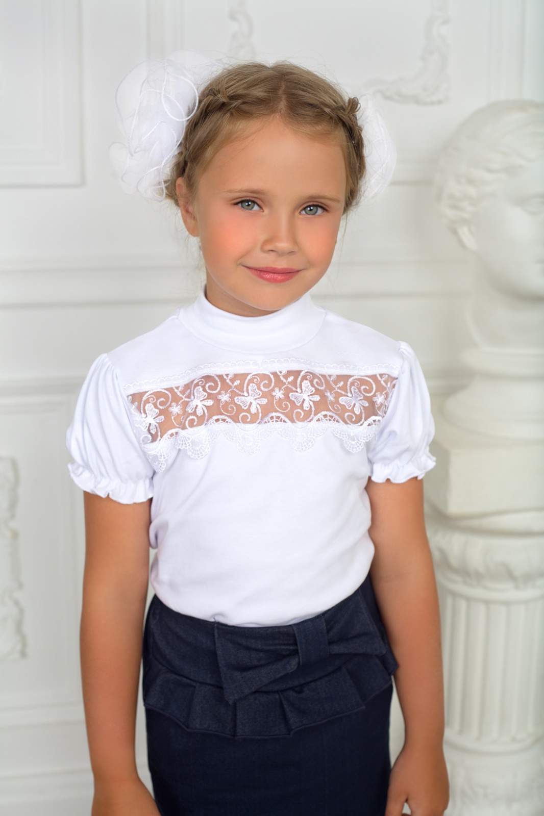 Описание: Блузка из интерлока, рукав "фонарик" , небольшая полоска шитья на полочке привлекает внимание. Рекомендвана для школы на каждый день.