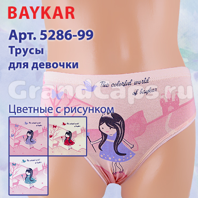 Элегантные трусики-слипы с оригинальным рисунком (арт. 5286) подчеркнут индивидуальность каждой девочки. Белье изготовлено из хлопка - незаменимого материала для детского нижнего белья. Стандартная треугольная форма трусиков не стесняет движений и не препятствует физиологическому развитию девочки. Широкий эластичный пояс прекрасно удерживает трусики. Вырезы для ног обработаны эластичной резинкой и двойной строчкой. Изделие украшено красивым рисунком сказочной тематики.