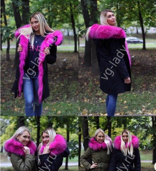 Куртка-парка, наполнитель верблюжья шерсть, подкладка отстегивается, с капюшоном, мех натуральный крашенный енот, ткань плотная х/б, длина - 81 см, рукав - 63см.