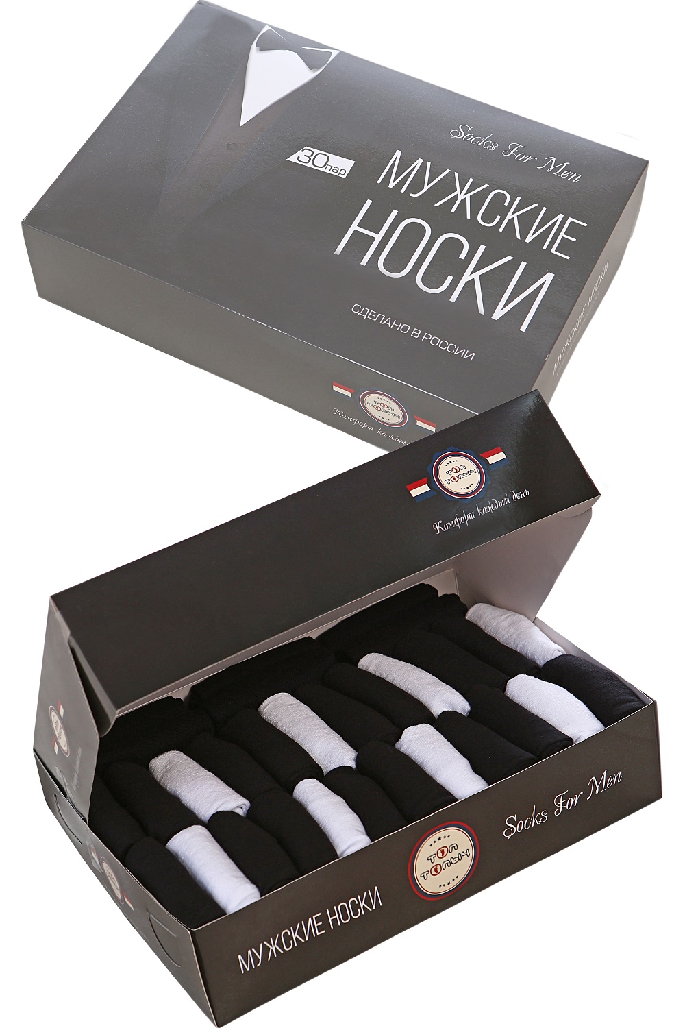 Однотонные носки без рисунка черного и белого цвета в подарочной упаковке, 30 пар