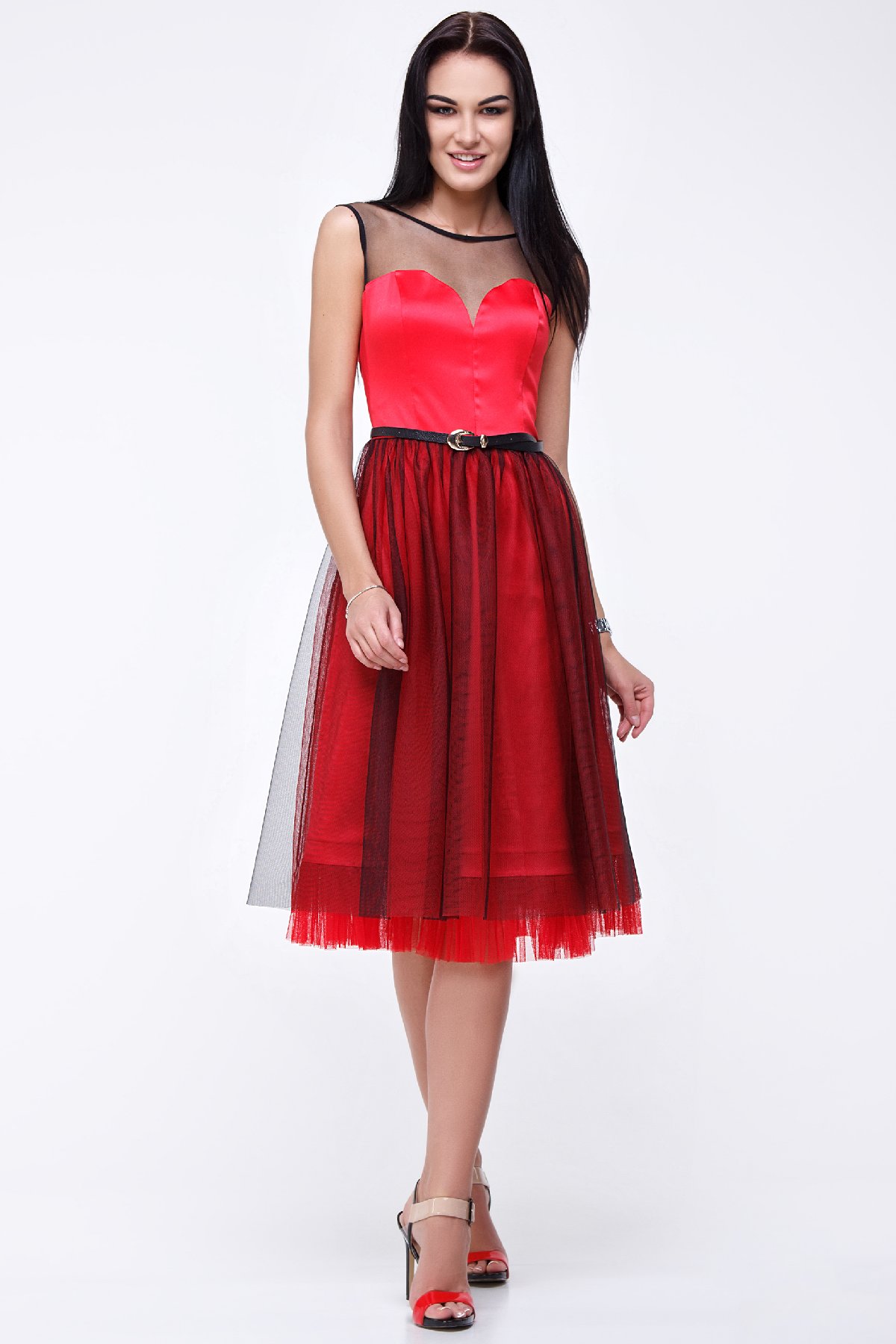 Платье состоит из атласа и сетки, потайная молния на спинке и застёжка на пуговицу, низ покрыт несколькими слоями из сетки, пояс в комплекте.