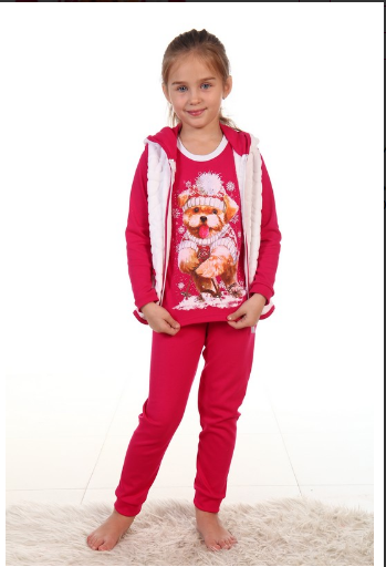 Состав : Брюки, кофта: Ткань: интерлок. Состав: 100%-хлопок. Жилет: Ткань: велсофт. Состав: 100%-ПЭ