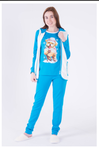 Состав : Брюки, кофта: Ткань: интерлок. Состав: 100%-хлопок. Жилет: Ткань: велсофт. Состав: 100%-ПЭ