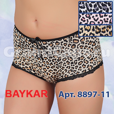 Женские трусики (арт.8897) - удивительная и яркая модель, сшитая для смелых красавиц. Стильное белье в виде шортов идеально сидит по фигуре, акцентируя внимание на округлостях тела. Широкие боковинки плотно облегают бедра, не собираются гармошкой и практически не заметны под узкой одеждой. Современный <<хищный>> принт по всей поверхности изделия дополнен изящными черными резиночками и игривым бантиком.
