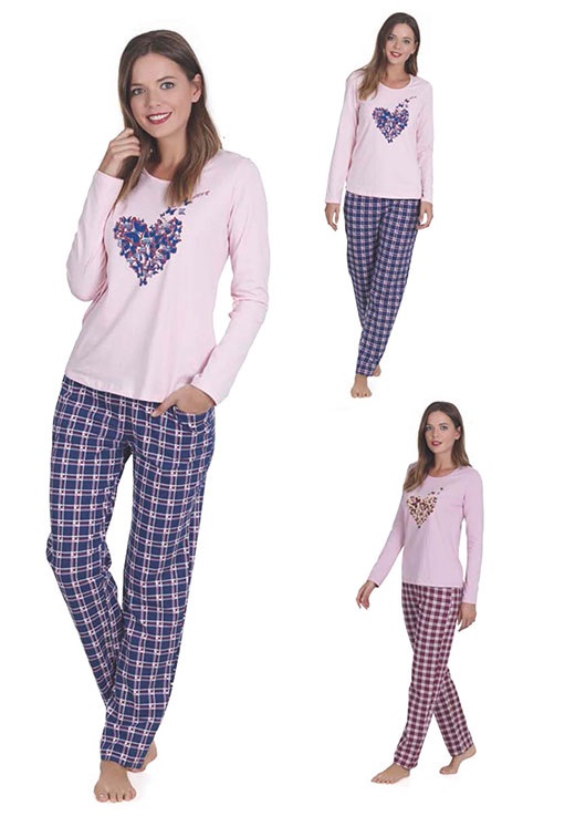 Женская пижама (арт. 9520) - это изящная и стильная одежда для сна, в которой будет очень комфортно. Верхняя часть сделана в виде футболки с длинным рукавом и декорирована романтичным принтом в области груди. Брючки по щиколотку сшиты из материала в модную клетку. Комплект идеально сидит по фигуре и не сдерживает движений. Качественная ткань не линяет и приятна для кожи. В магазине продукция представлена в синем и розовом варианте.