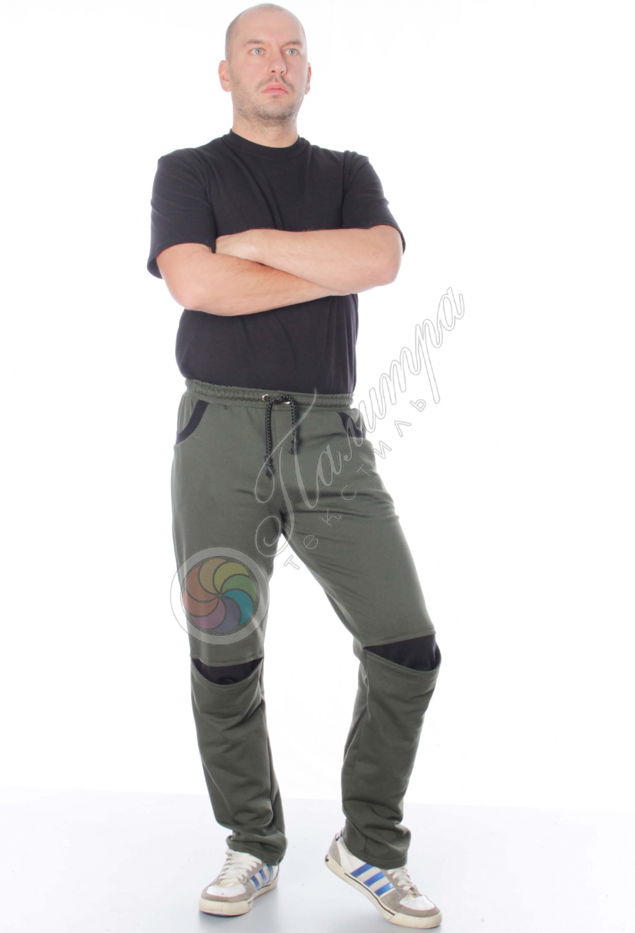 Удобные и практичные брюки прямого кроя с комбинированными вставками. Ткань мягкий и тёплый облегчённый футер. Отделка карманов из рибаны.