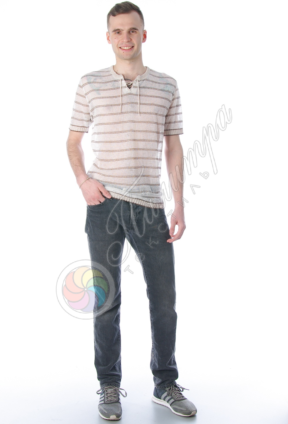 Стильная полосатая футболка-сетка из натурального качественного хлопка.
