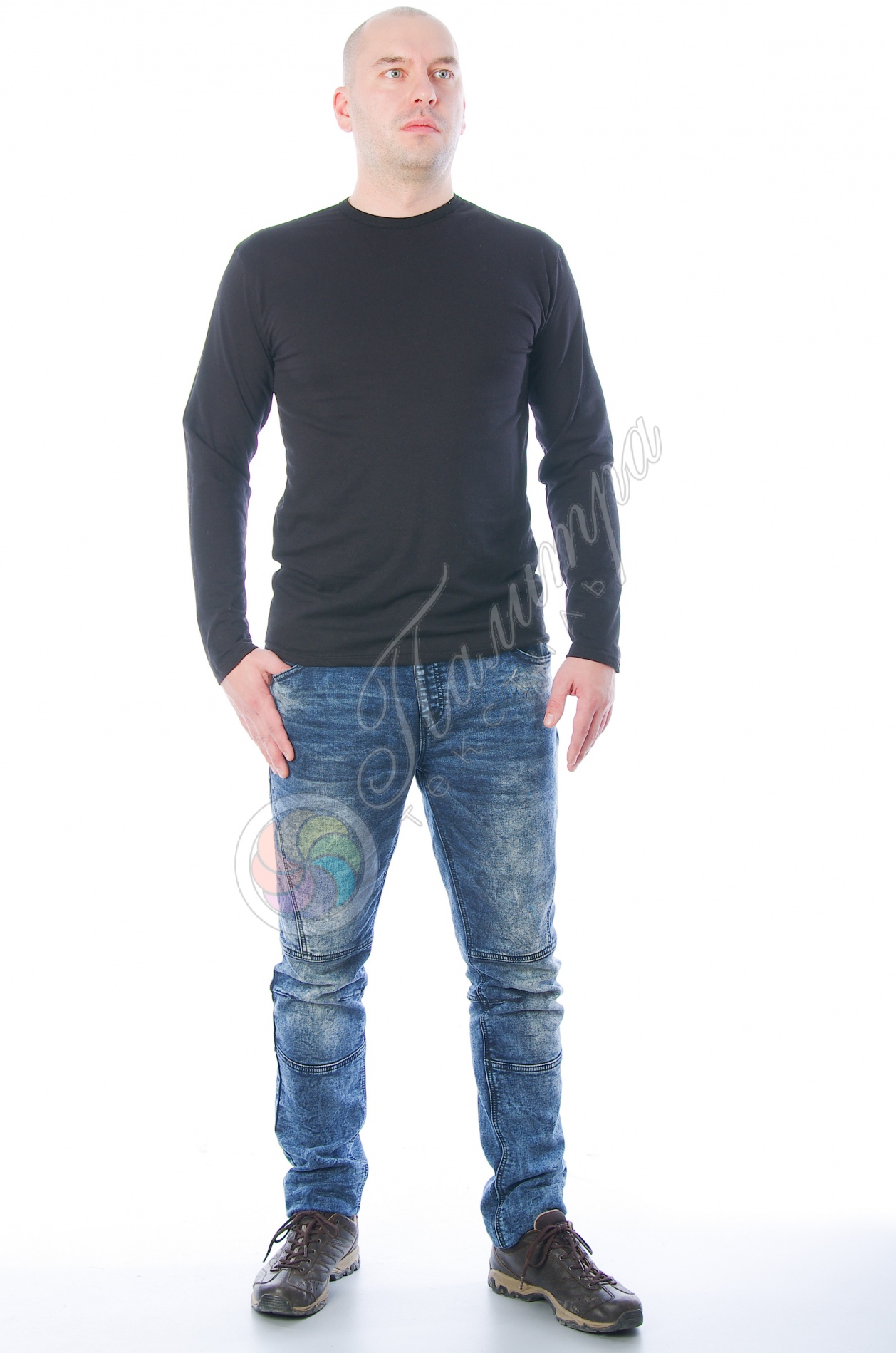 Футболка мужская однотонная с длинным рукавом, классический (прямой) покрой. В изготовлении футболок, используется трикотажное кулирное полотно, состоящее из 100% хлопка, плотностью 150-160 г/м2.