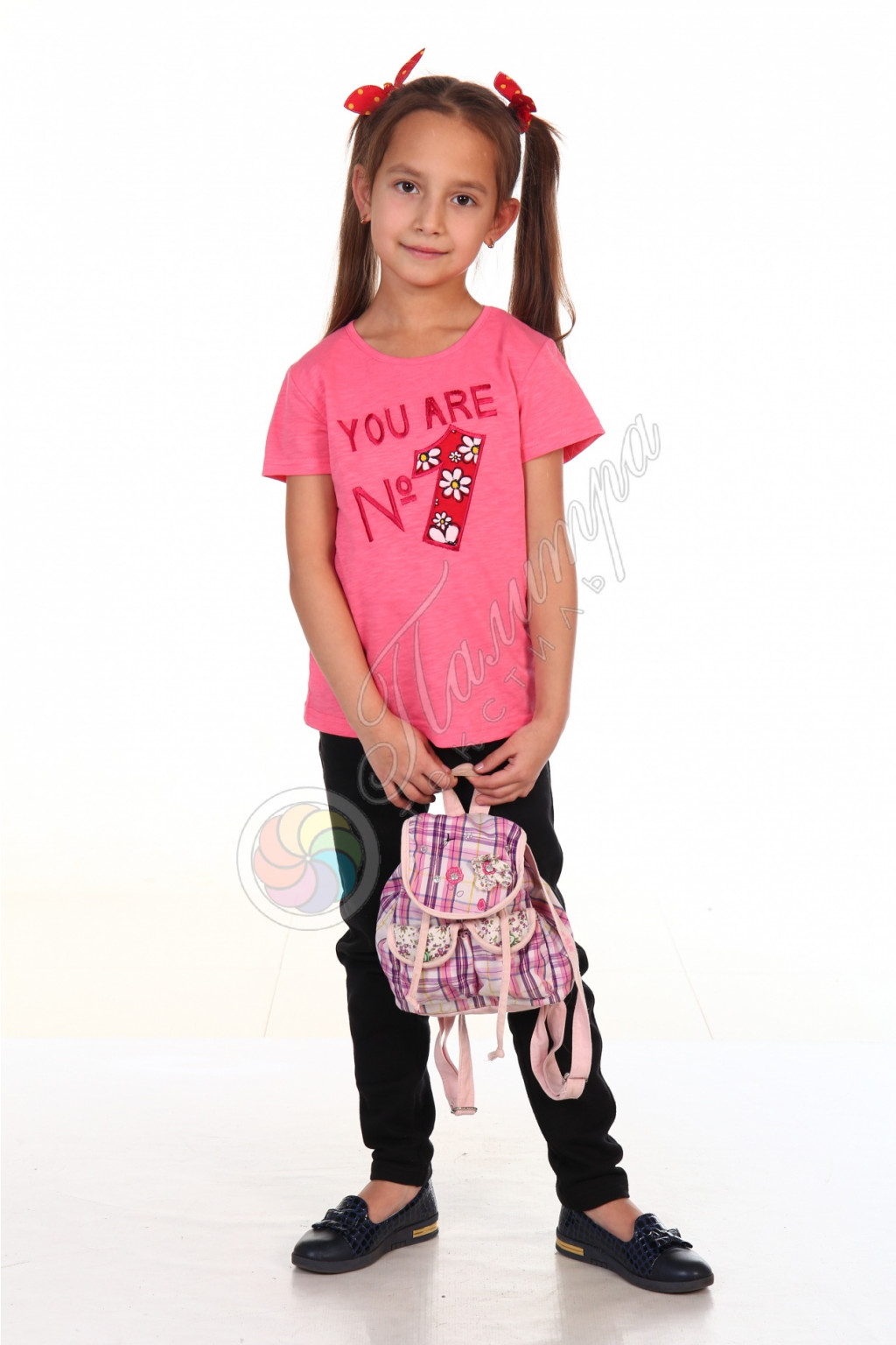 Стильная футболка для девочки из кулирки. Вышивка "Ты No1" станет настоящим девизом для красавиц!