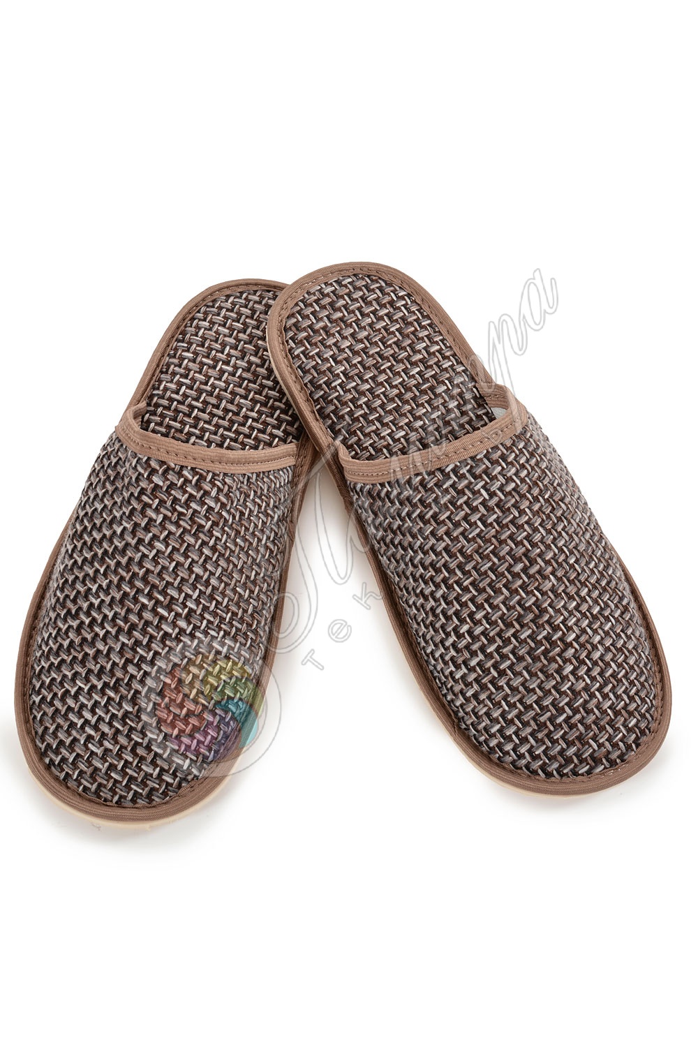 Мужские закрытые шлепанцы из натурального экологического материала, стелька лён, подошва ЭВА пластик.