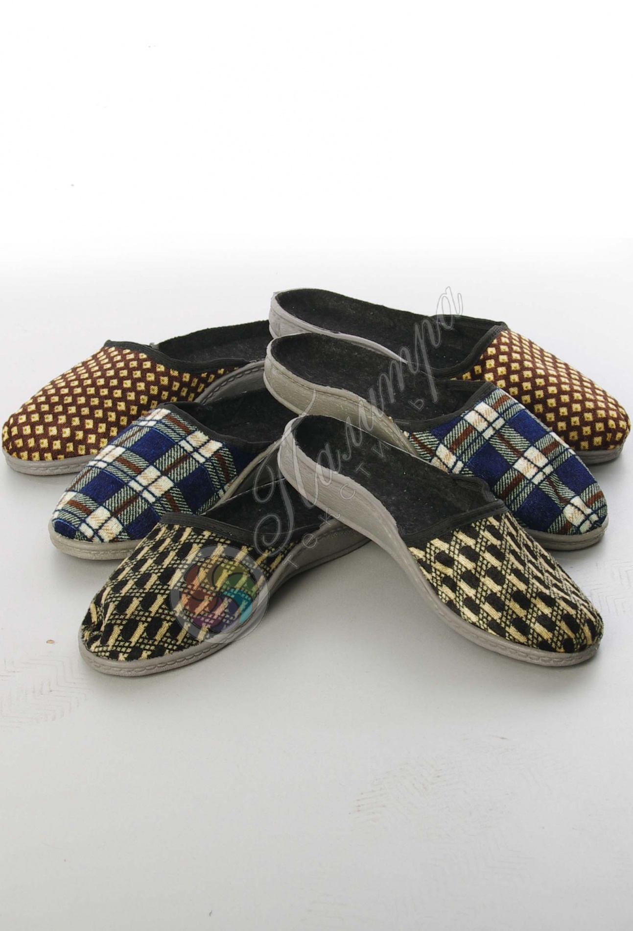Классические домашние шлепанцы строгих "мужских" расцветок с легким текстильным верхом на твердой резиновой подошве.
