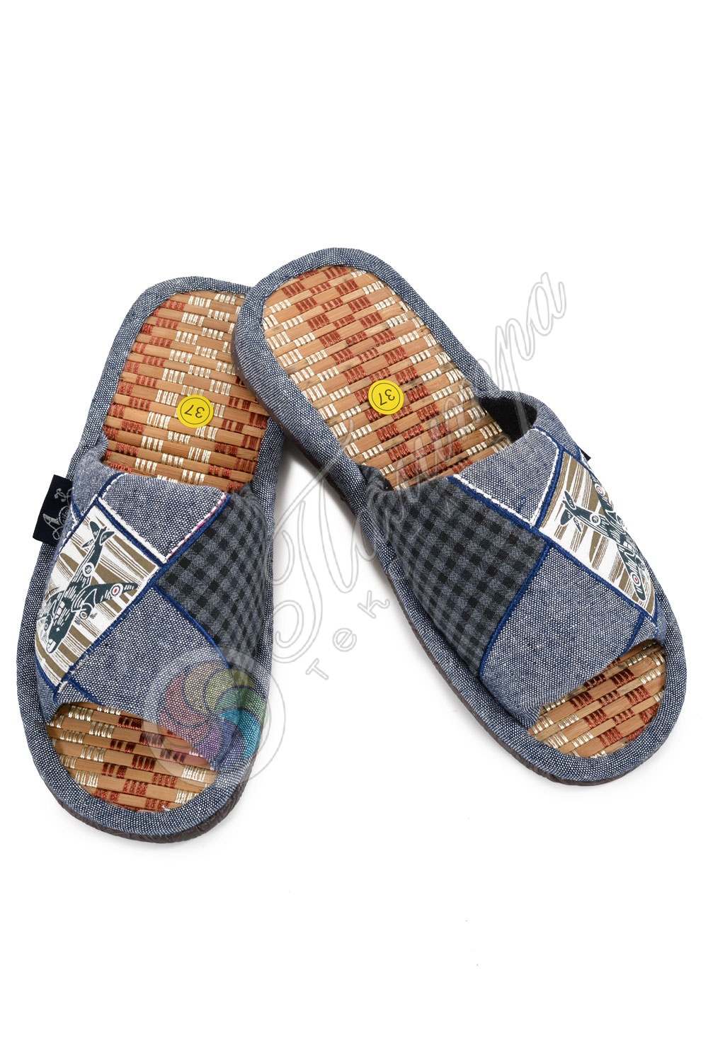 Открытые, удобные подростковые тапки из текстиля с комфортной стелькой из соломки. Подошва из плёнки ПВХ с тиснением. Внимание: модель продаётся без подборки по цвету!