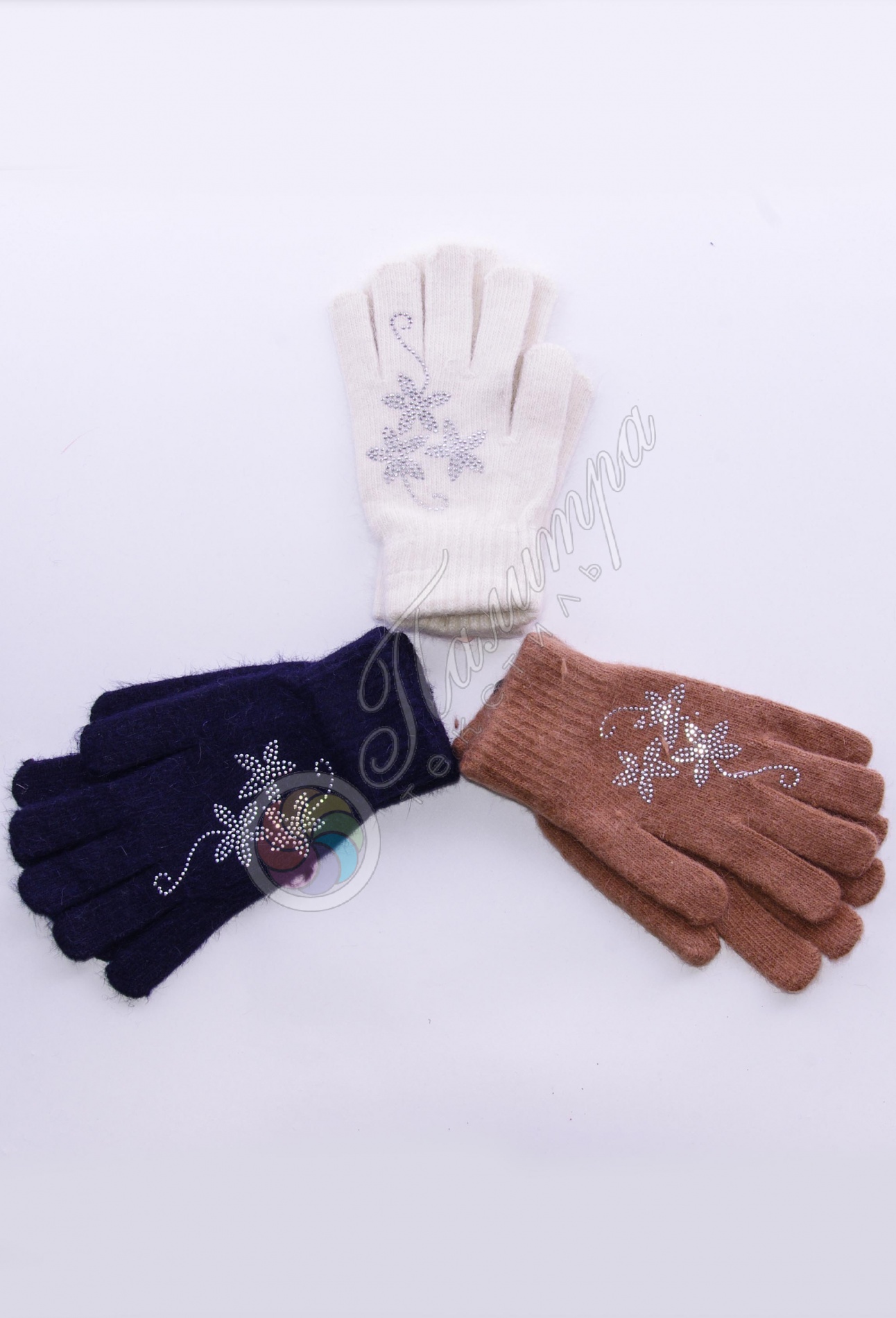 Женские перчатки, украшенные стразами, из очень приятного вязаного трикотажа с добавлением ангоры.