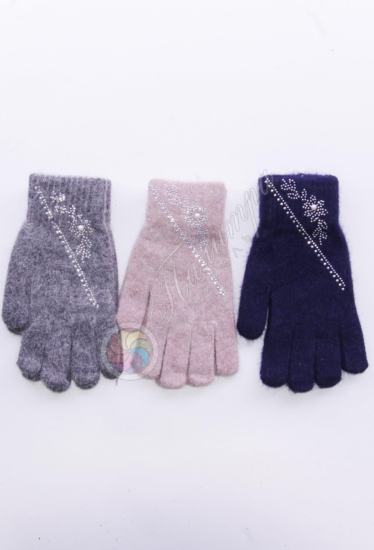 Женские перчатки, украшенные стразами, из очень приятного вязаного трикотажа с добавлением ангоры.