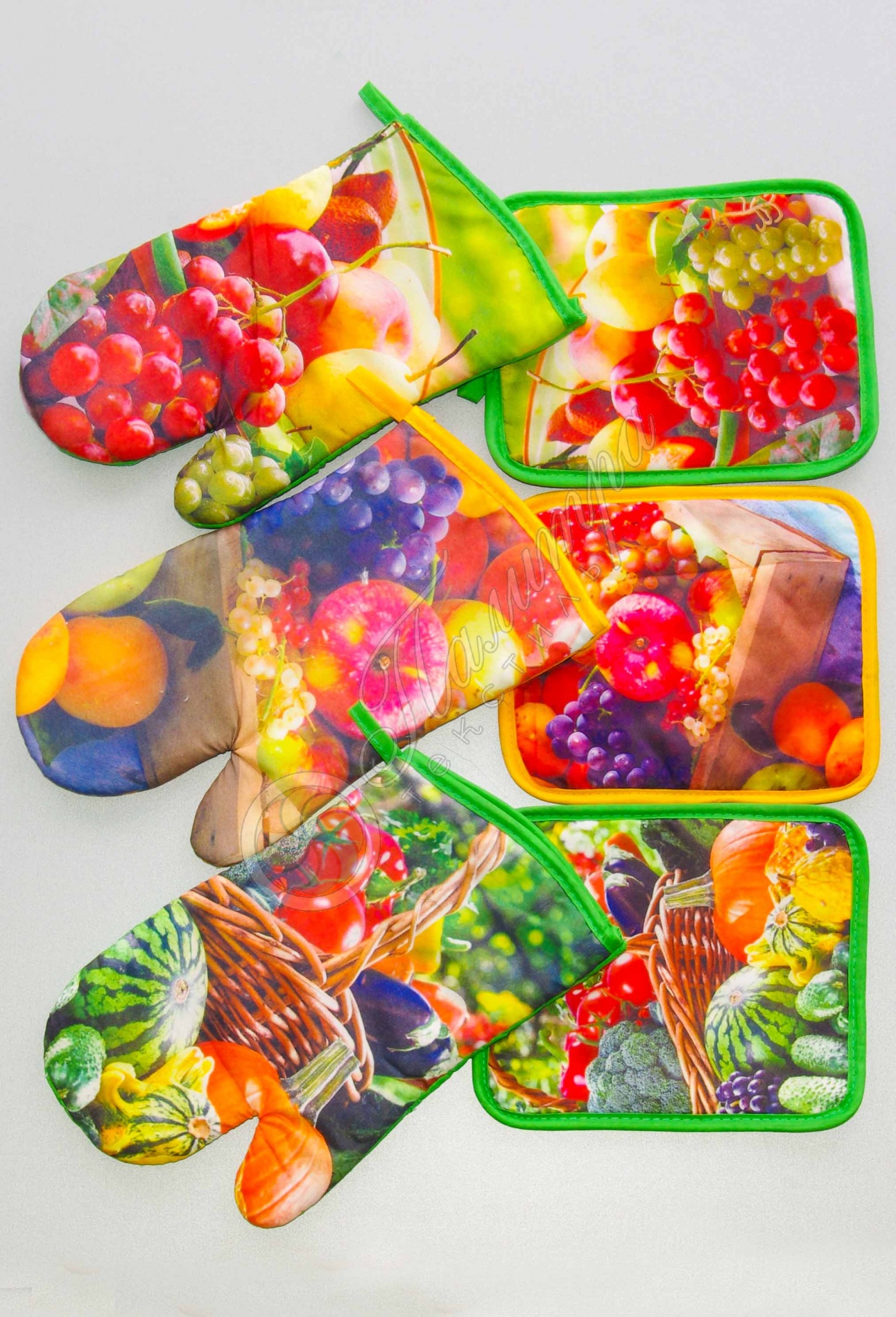 Кухонный наборчик ярких расцветок украсит Вашу кухню и обеспечит безопасность ручек каждый день. В комплекте: варежка и прихватка, одна сторона хлопковая, вторая - тефлон. Производство Китай.