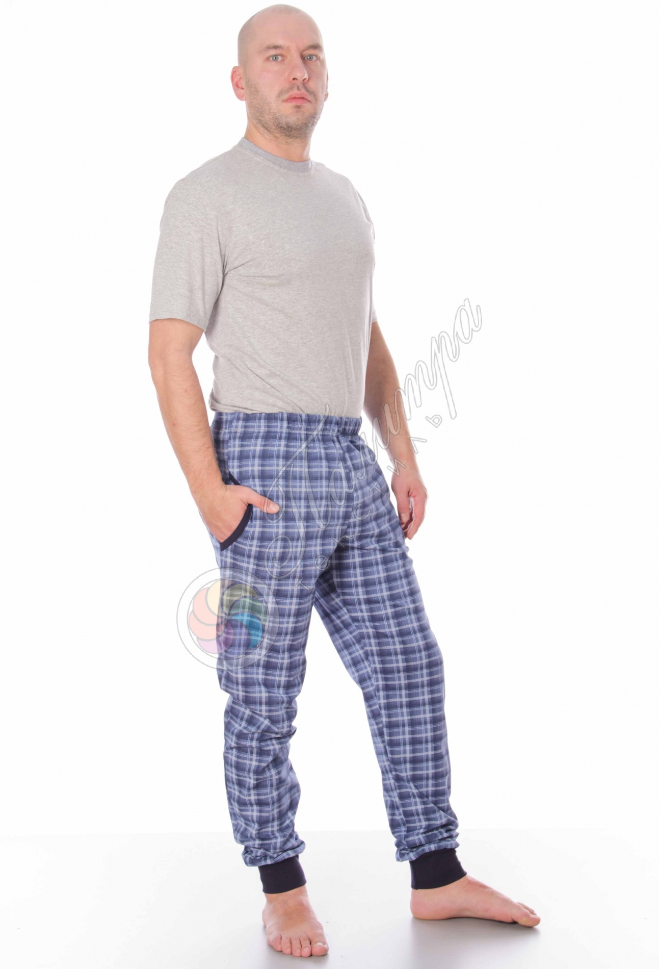 Домашние хлопковые брюки на манжете из рибаны, пояс на широкой резинке, удобные боковые карманы с контрастной отделкой. Незаменимая удобная и комфортная вещь в домашнем гардеробе! Ткань кулирка.