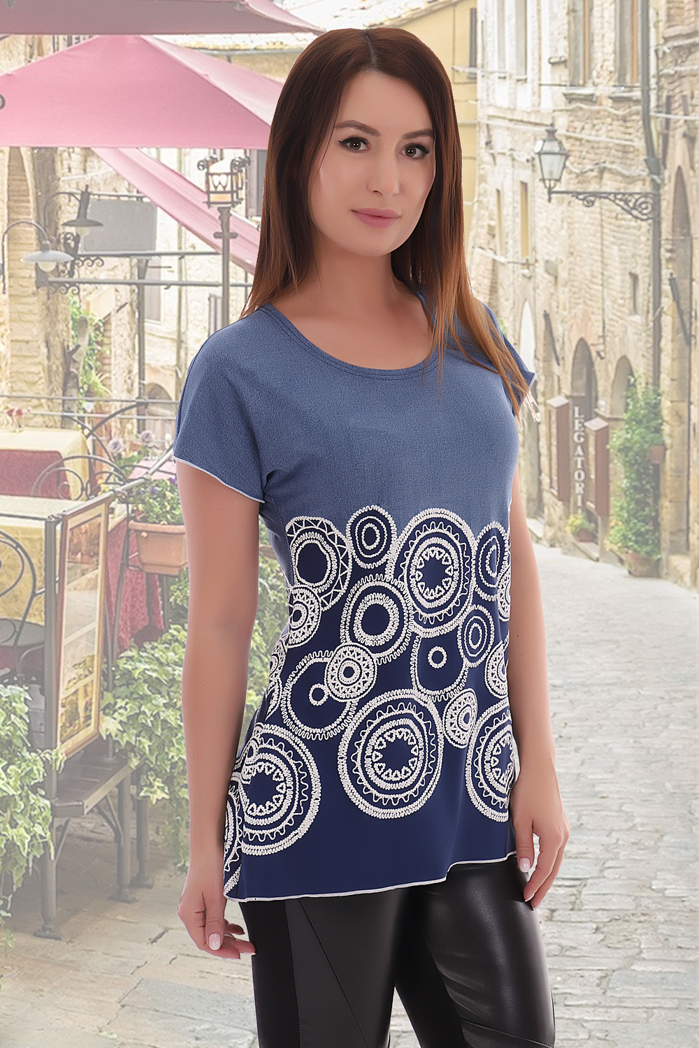 Женская универсальная блузка из ткани-купон, приспущенный рукав. Низ и рукава обработаны на спецмашине