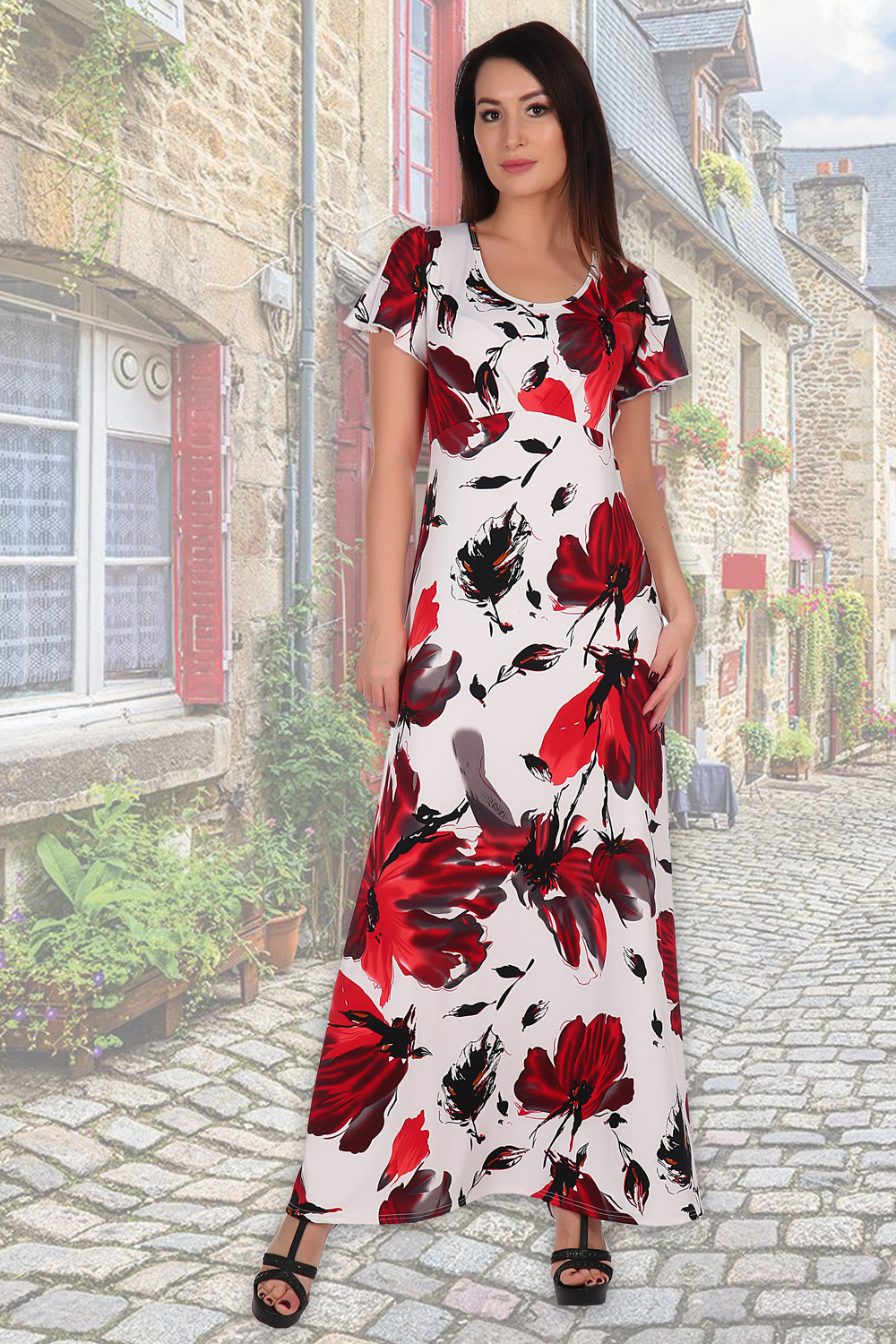 Платье-макси универсальное, рукав-крыло, на груди-драпировка